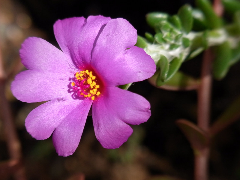 Portulaca sp. なんというか、シルキーな質感のピンクというか薄赤紫色の花。