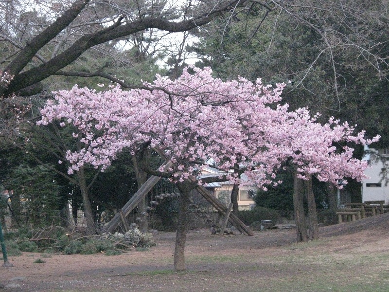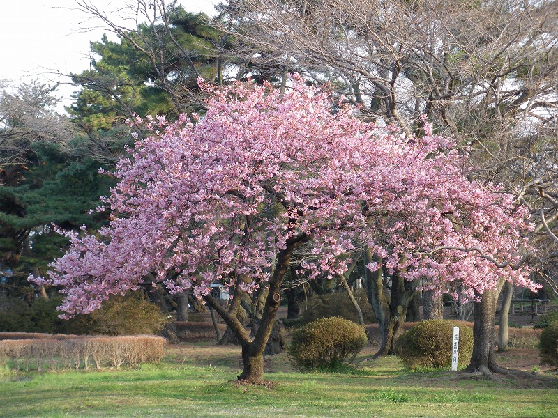 今咲いておりますのは、早咲きで知られるカワヅザクラ(河津桜)でございますが。