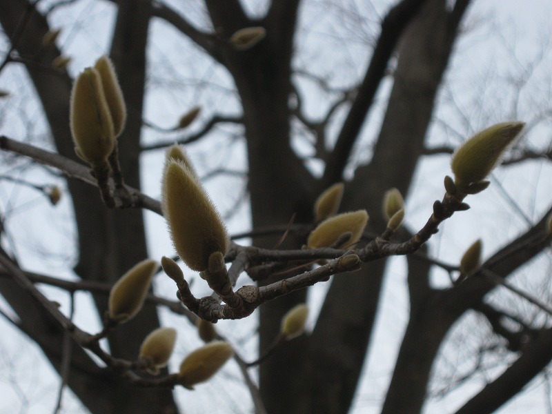 この写真を撮った日、モクレンはまだ蕾でした。