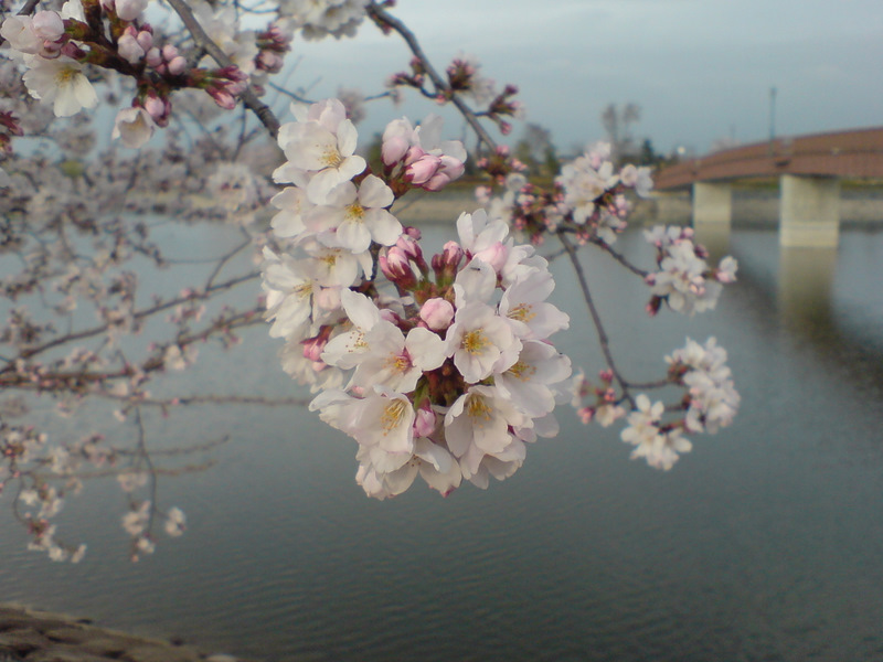 沼の周りをサクラが取り囲んでいました。