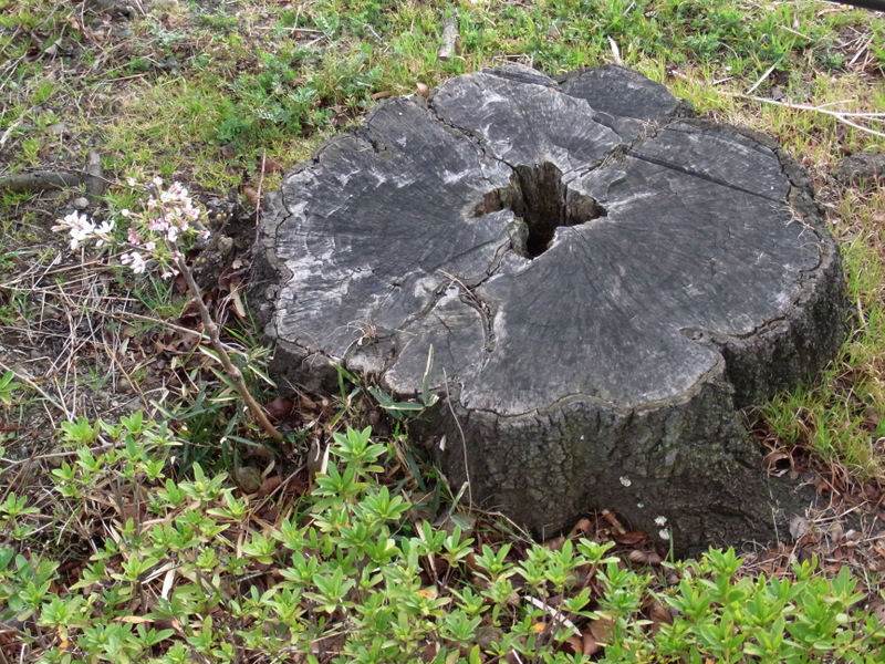 大きな切り株があって、、、