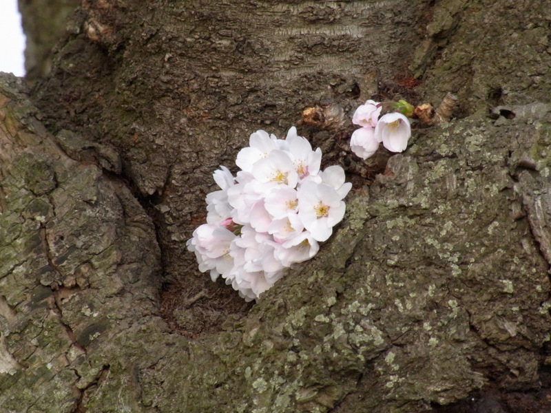 サクラにしては珍しく上向きに咲いた花が。