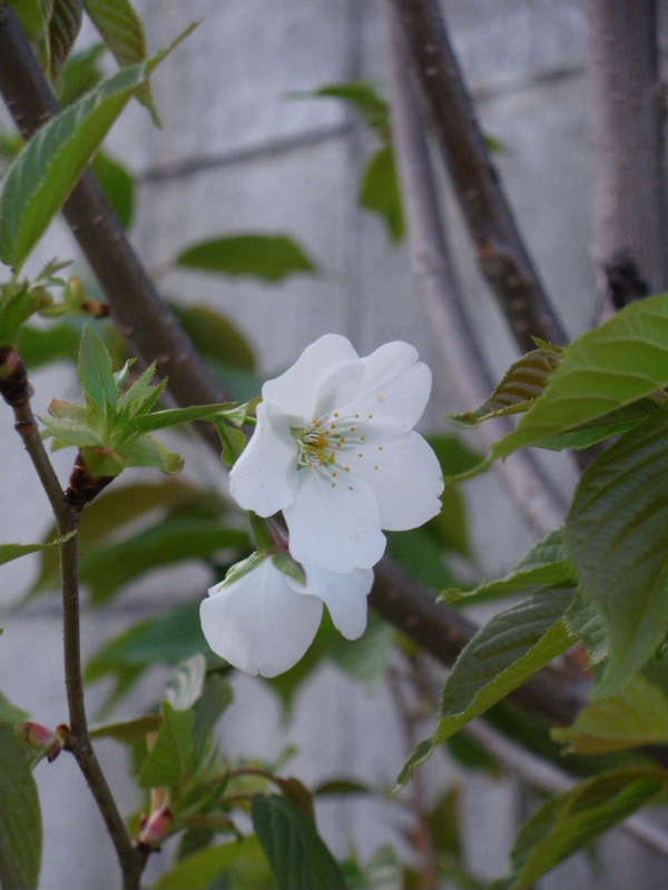 傍らから出た枝に花が咲いてました。