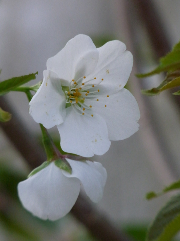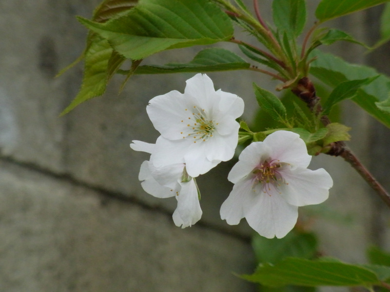 花が白く、葉が出てから咲くという点でオオシマザクラかな、とも思いますが、
