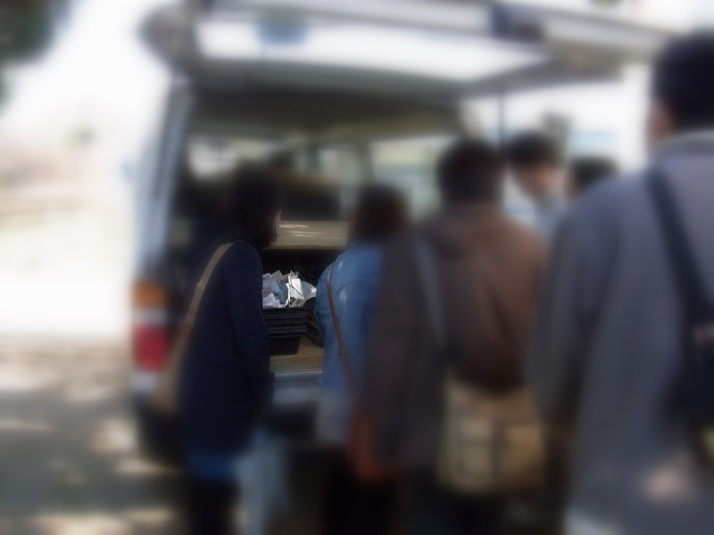 帰り際、園の運搬車の積荷に皆さん釘付けになりまして。