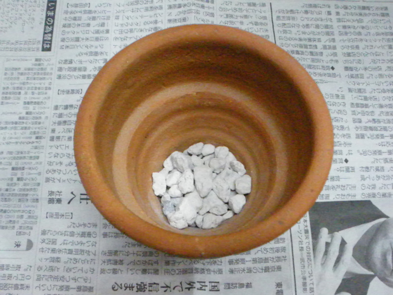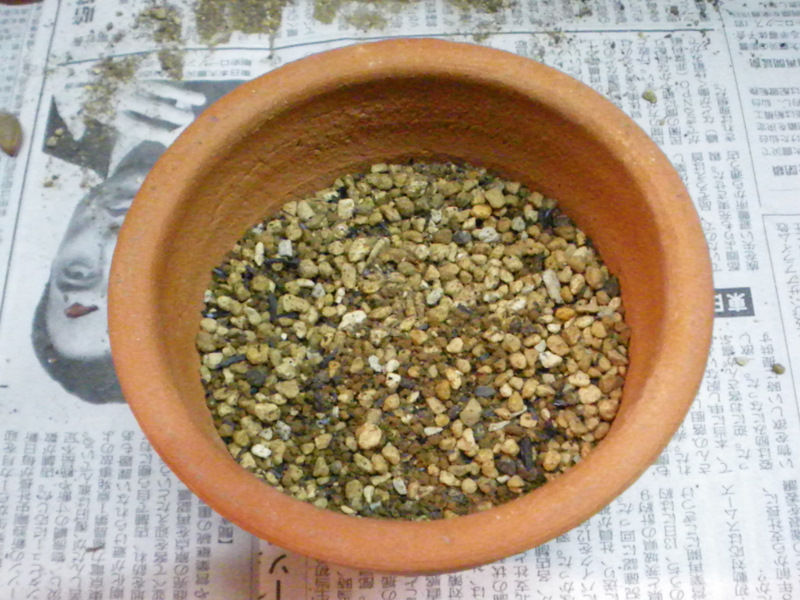 鉢の底に石ころを敷くか底穴を網で塞ぎまして。
